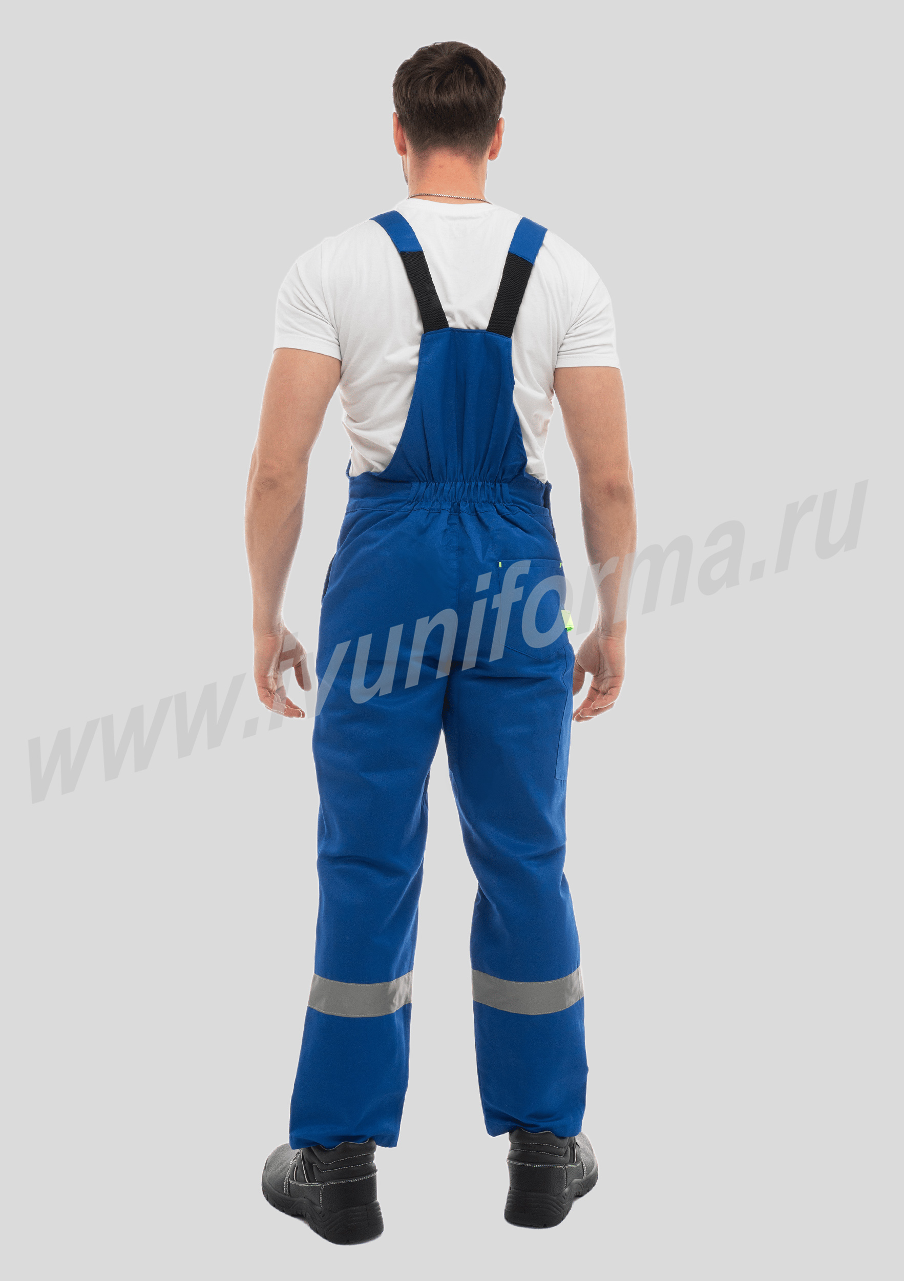 Костюм рабочий мужской состоит из куртки и полукомбинезона. Куртка с потайной застежкой на пуговицы и двумя накладными карманами, регулируется по низу эластичной лентой. Полукомбинезон с застежкой на пуговицы. Костюм оснащен лентой СВП-50 мм по груди и низу полукомбинезона. Костюм рабочий мужской с СВП предназначен для защиты от общепроизводственных загрязнений и производственных травм.